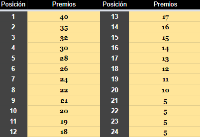 Los pilotos deberán cumplir el 75% del total de vueltas para recibir premios.