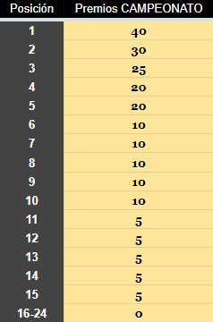 6.2 - Tabla de premios por campeonato (K).