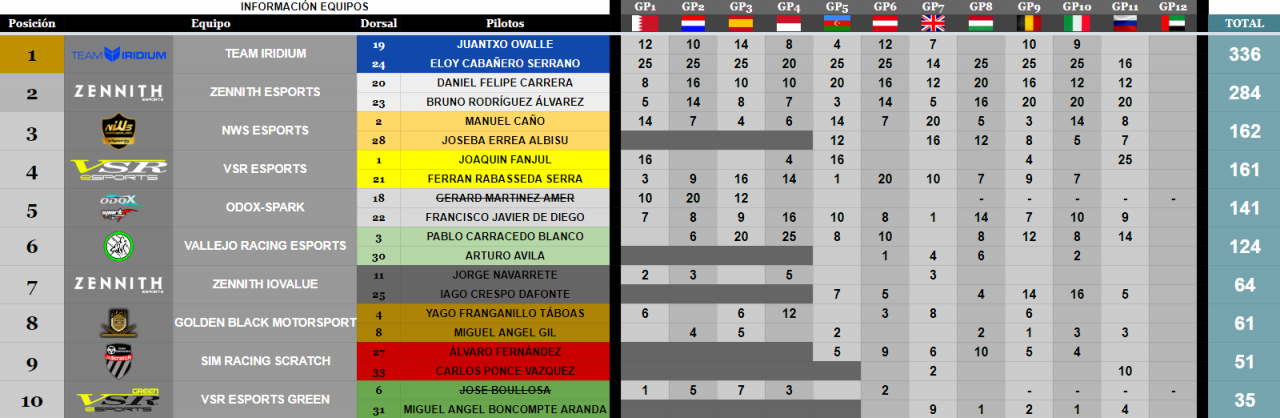 Los pilotos que ocupen del puesto 1 al 12.