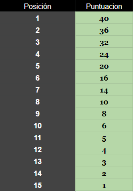 Los pilotos deberán cumplir el 75% del total de vueltas para puntuar.
