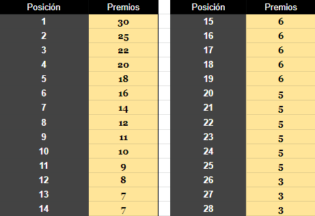 Los pilotos deberán cumplir el 75% del total de vueltas para recibir premios.