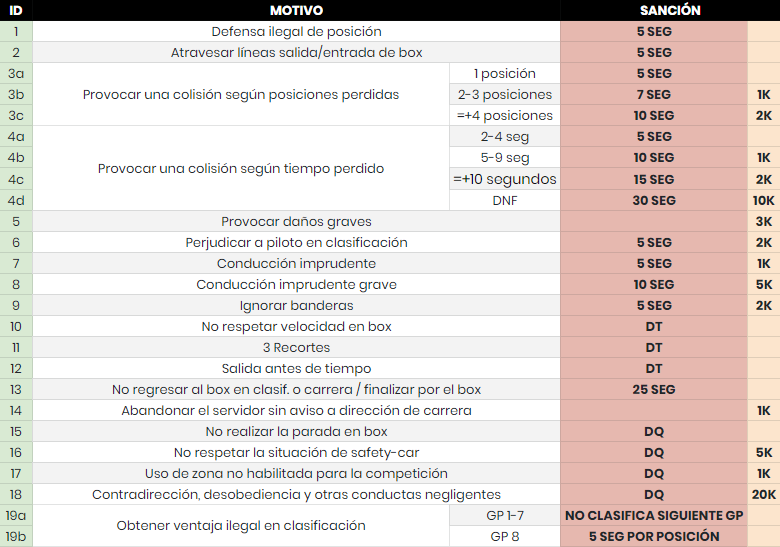4.2.1 - Puedes realizar una apelación sobre una sanción recibida en un plazo de 24h después de estar publicadas las sanciones a través del siguiente enlace.
