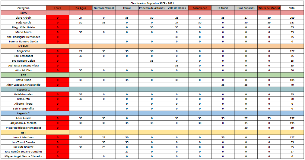 12.5 - Se descartaran dos resultados del total del Campeonato, teniendo que ser uno dentro de las primeras 4 pruebas (tras la anulación del rallye de lorca) y otro en las 5 últimas.