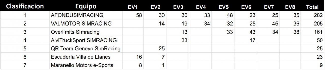 13.8 - Los equipos serán premiados de 2 maneras diferentes. La RFEDA premiara al equipo con mas puntuación del RacingWeekend general, mientras CSR dará un trofeo al mejor equipo en cada modalidad del Racing Weekend.