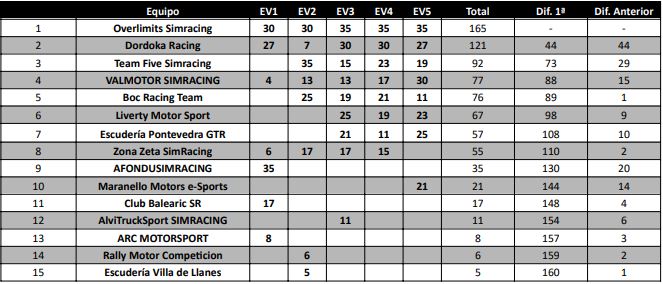 1º 35 Puntos - 8º 17 Puntos - 15º 6 Puntos