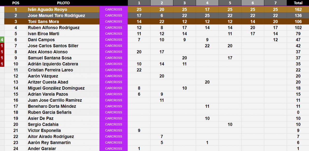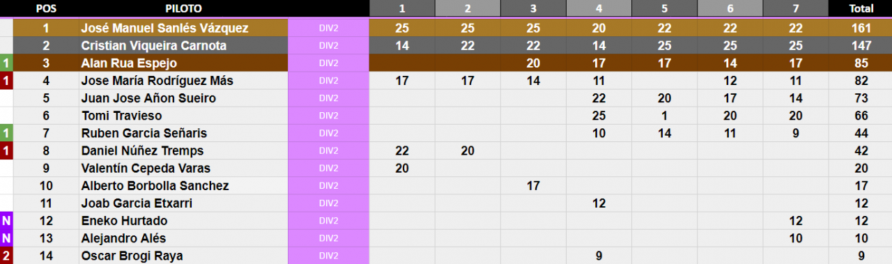 2º 22 Puntos - 7º 11 Puntos - 12º 6 Puntos