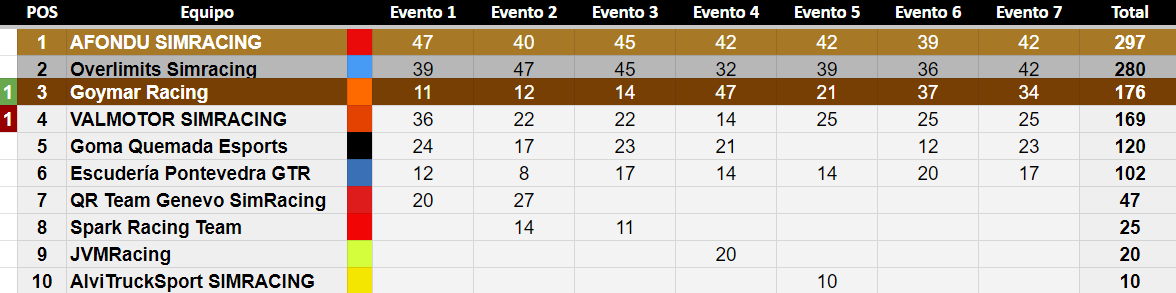 4º 17 Puntos - 9º 9 Puntos - 14º 4 Puntos