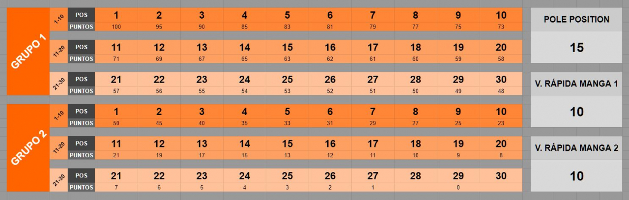 La Parrilla de la Carrera 2 se formará en función de la Clasificación oficial provisional publicada por la Dirección de Carrera, inmediatamente después de finalizar la 1ª Carrera invirtiendo el orden de salida de los OCHO primeros clasificados.