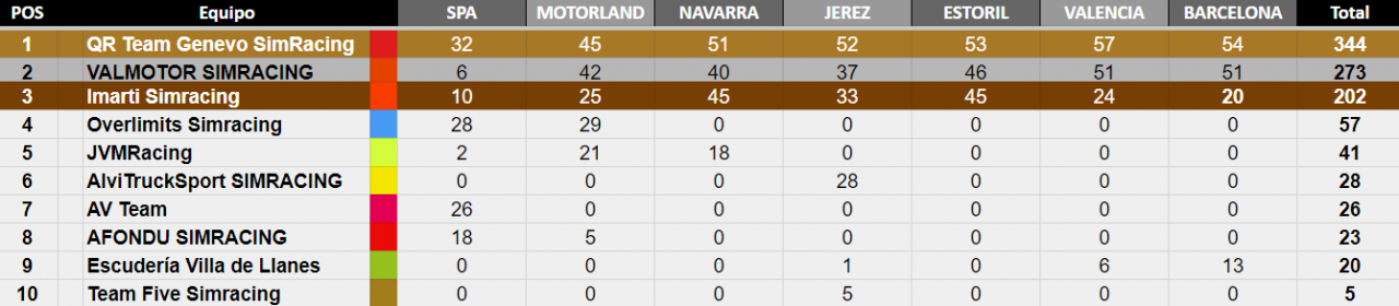 1º 15 Puntos - 2º 12 Puntos - 3º 10 Puntos - 4º 8 Puntos