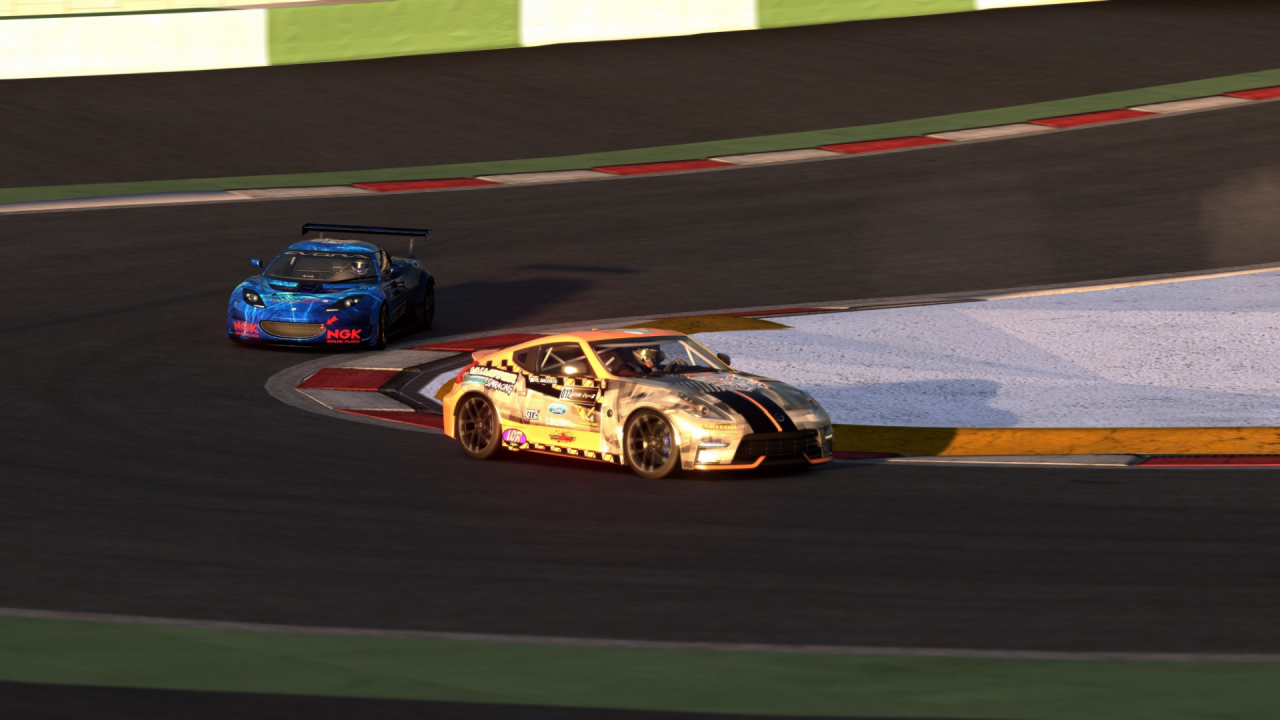 Tras la salida lanzada nos quedaba una hora de carrera, con las diferentes estrategias de parada, consumo de ruedas y gasolina para descubrir entre los participantes. Salida limpia y Alex Alonso se colocaba delante, seguido de Banegas. David de la Vera se colocaba tercero y Viqueira recibía un empujón en la curva más lenta y perdía alguna posición. Álvaro García estaba cuarto. Quinto rodaba Juanjo López, Viqueira sexto, al que le seguía Jesús Manuel Dobao, Ramiro Dacosta y Alberto Álvarez cerraba el grupo. Todos con Lotus Evora excepto Dacosta que lo hacía con el Nissan 370. Todos con neumáticos medios excepto Banegas, Dobao y Álvarez. Banegas ya atacaba a Alonso desde la primera vuelta. La idea de Banegas era presionar a Alonso, consciente de que sus neumáticos eran al principio más rápido. Viqueira superaba a López en la segunda vuelta. Banegas superaba a Alonso en la frenada de la curva ciega. Banegas iba ampliando su diferencia sobre Alonso, mientras que López trompeaba y perdía posiciones.