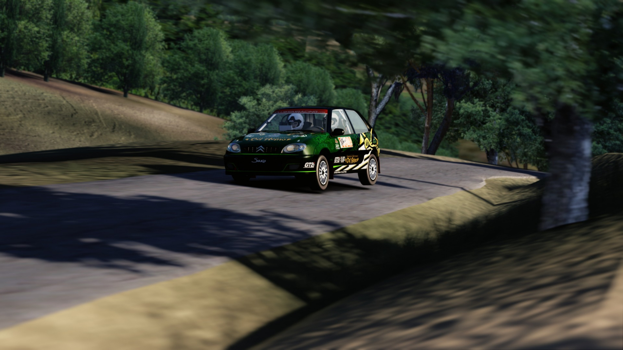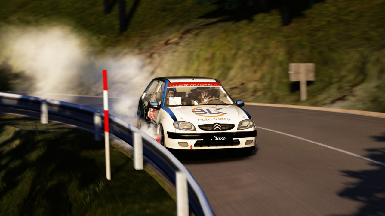Arrancó la nueva fórmula de hacer rallyes divertidos de ClubSimracing, la Rally Solo Saxo, que en su evento numero 1 presentaba un abanico de posibilidades muy interesantes. Dos tramos, largos, a ser posible con suficiente bajada, uno de ellos era Pratdip, muy utilizado en el RallyRACC, con tres diferentes carreteras, la inicial ancha y de largos apoyos, una media muy estrecha y accidentada, para terminar con una bajada de carretera aceptable. El otro tramo era el de San Sadurniño-As Somozas, del Rally Ferrol, largo tramo con mucha bajada y carretera más estrecha. Entre medio y como novedad, se celebraba la primera “bajada” en cuesta del Simracing, y para ello se escogió la de la Subida a Alp 2500, un trazado espectacular de Subida, utilizado en el Campeonato de España de Montaña en algunas ocasiones, y que de bajada era puro espectáculo y diversión. Se cerraba la competición con el trazado del Jarama, como no, en dirección inversa y con una serie de desviaciones y chicanes que modificaban en gran parte el trazado archiconocido del circuito madrileño. Todo ello con un Citroën Saxo 8V de Grupo N, es decir, con modificaciones con respecto al de la Copa en el tema suspensiones, neumáticos, caja de cambios más corta, autoblocante al 60%, además de la incorporación de parrilla de faros, copiloto y rueda de repuesto, entre otros detalles.